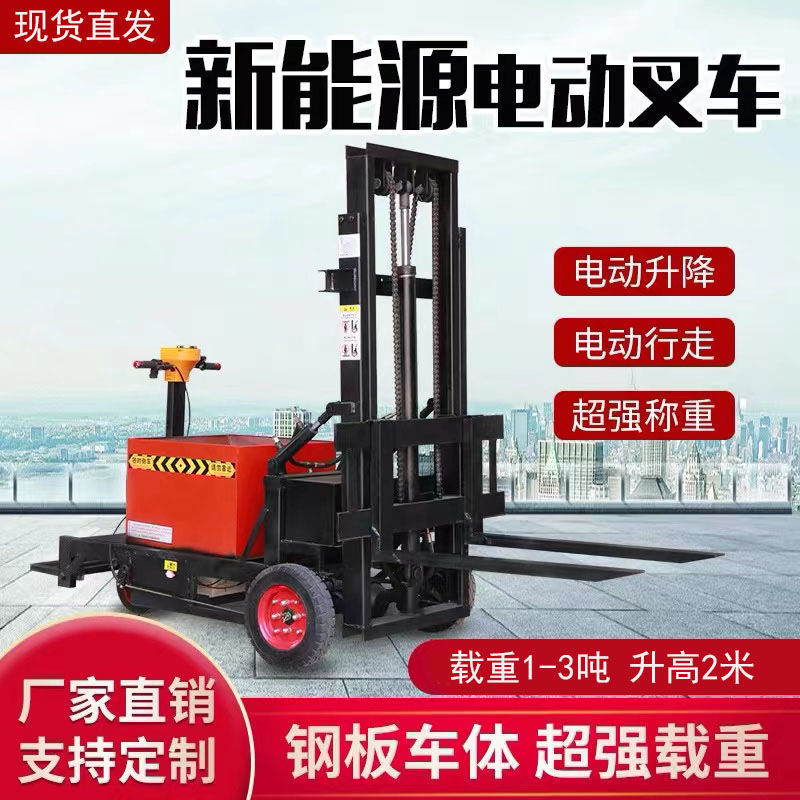 新安县小型电动叉车1吨站驾式2吨液压升高铲车全自动仓储堆高车